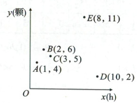 13. [2023·浙江杭州高三模拟]某兴趣小组研究光照时长$x$(单位:$h$)和向日葵种子发芽数量$y$(单位:颗)之间的关系,采集$5$组数据,作出如图的散点图。若去掉$D(10,2)$后,下列说法正确的是(