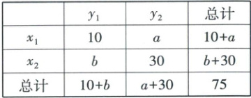 8. [2023·河南南阳高二期中]已知两个分类变量 $X$,$Y$ 的可能取值分别为 $\{x_{1},x_{2}\}$ 和 $\{y_{1},y_{2}\}$,通过随机调查得到样本数据,再整理成如下的 $2×2$ 列联表,其中 $a < b$,当判断 $X$ 与 $Y$ 有关系的把握最小时,$a$ 的值为(