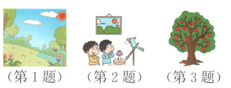 三、看图,判断下列句子或对话与图片是否相符,用“√”或“×”表示。