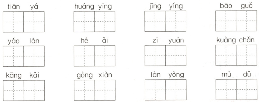 二、天涯 黄莺 晶莹 包裹 摇篮 和蔼 资源 矿产 慷慨 贡献 滥用 目睹