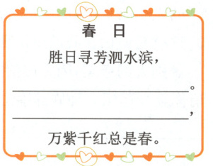 品析古诗情感 三、先将古诗《春日》补充完整,再判断下列说法的正误,对的画“√”,错的画“×”。