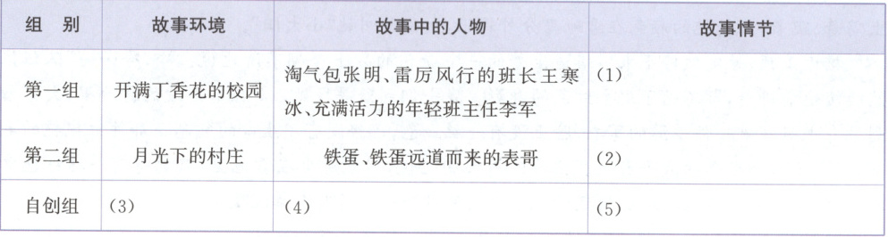 三、[精挑细选]结合课本,并展开丰富的想象补全下表。