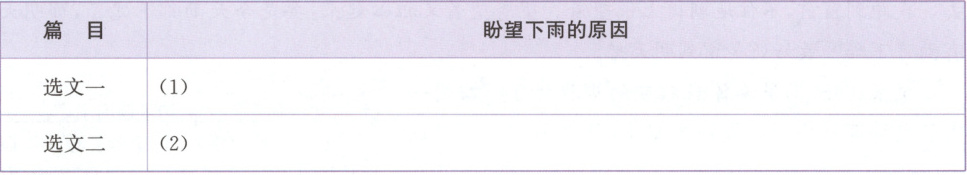 5.将两篇选文进行比较,说一说两位作者盼望下雨的原因分别是什么。
