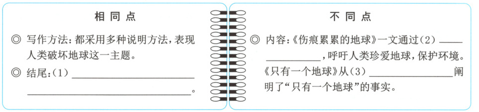 4.(链接教材)比较本文与课文《只有一个地球》,完成填空。
