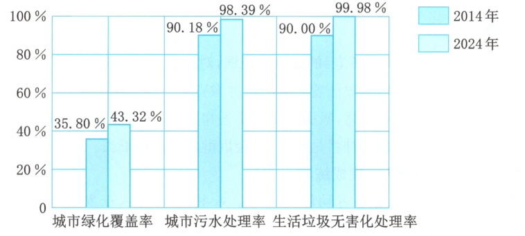不管是城市绿化覆盖率,城市污水处理率还是生活垃圾无害化处理率,都在上升,人们保护环境、保护地球的意识有所提高。