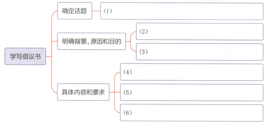 三、[梳理思路]确定好要围绕哪一个话题来发起倡议,理清思路,完成下面的思维导图。