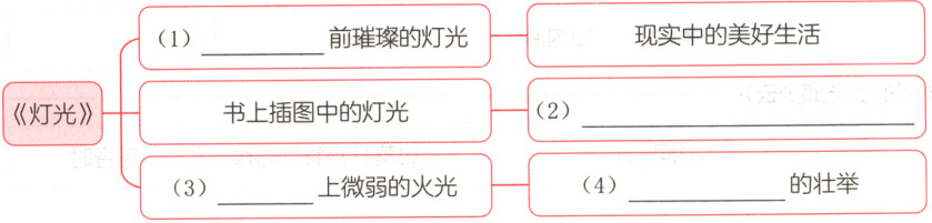 五、1.郝副营长 痛惜 2.路人 欣赏天安门广场美丽的夜景 郝副营长 示例:插图上的孩子在电灯下看书学习,是多么幸福 郝副营长 “我”