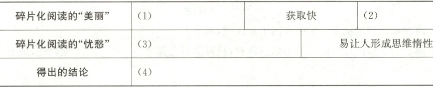 3. 碎片化阅读的“美丽”和“忧愁”具体指什么?请梳理材料信息,填写下表。(4分)