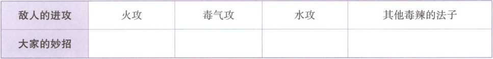 3.敌人破坏地道,大家又是用怎样的妙招防备的呢?完成表格,并回答问题。