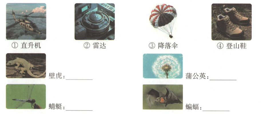 6.(跨学科知识·科学)讲解员最后向同学们科普了仿生学的知识,你还知道哪些仿生学的运用实例呢?请将序号填写在相对应的横线上。
