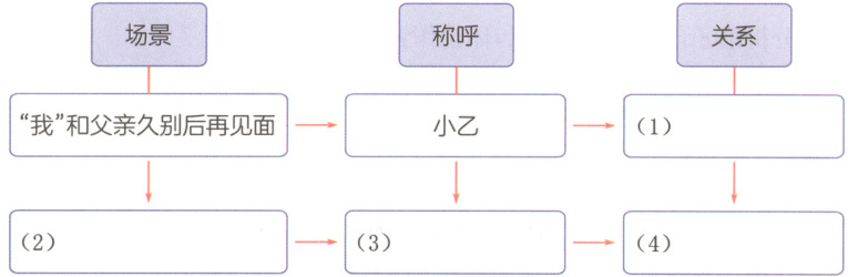 1.(思维导图)不同场景下,父亲对“我”的称呼不同,父子之间的关系也不同,请完成思维导图。
