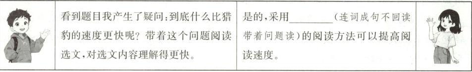 1. (阅读要素)读选文时,我们可以通过什么方法来提高阅读速度?补全下面对话。(1分)