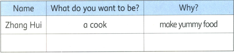 ◊ Make a survey. 问一问你的朋友未来想做什么,完成表格并说一说。