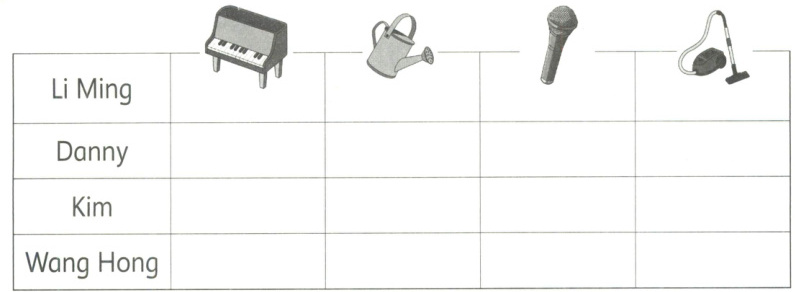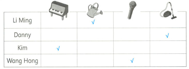 1 Listen and tick. 听录音,在与所听内容相符的表格中打钩。