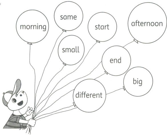2 Read and colour. 读一读,将单词意思相对的气球涂上相同的颜色。