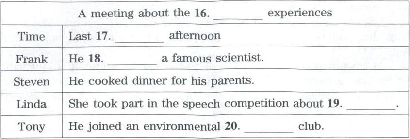 16.vacation 17.Friday 18.met 19.space 20.protection