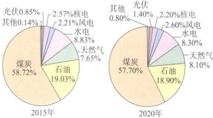 (1) 与2015年相比,2020年我国能源消费结构中 (