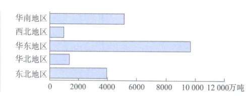 [河南三门峡 2023 期末]近年来,我国石油生产已远不能满足自身经济发展的需求,2020 年我国石油对外依存度高达$73.5\%$。读某年我国不同地区石油进口量统计图(下图),完成下面小题。