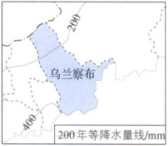 (1)由图示和所学知识可知,乌兰察布位于西北地区,属于干旱、半干旱地区,A错误;选项B为人为原因,不符合题意,B错误;内蒙古高原地形较平坦,C错误;该地是温带大陆性气候,气候干旱,降水稀少,冬春风沙天气多,风沙侵蚀严重,D正确。