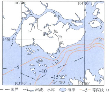 (2)据图推测,未来围海造陆潜力最大的海域可能位于新加坡的(