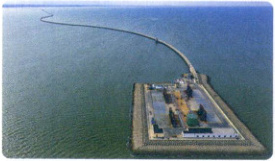 例2 [湖北孝感]2023 高二期末]“海油陆采”是开发水深不足3米、距离陆地较近的极浅海油藏的有效方式。近年来,胜利油田在渤海湾建设自海岸向海中延伸的道路,在道路的末端建设人工岛,在岛上钻井开采海底石油。下图为胜利油田人工采油岛景观图。据此完成下面小题。