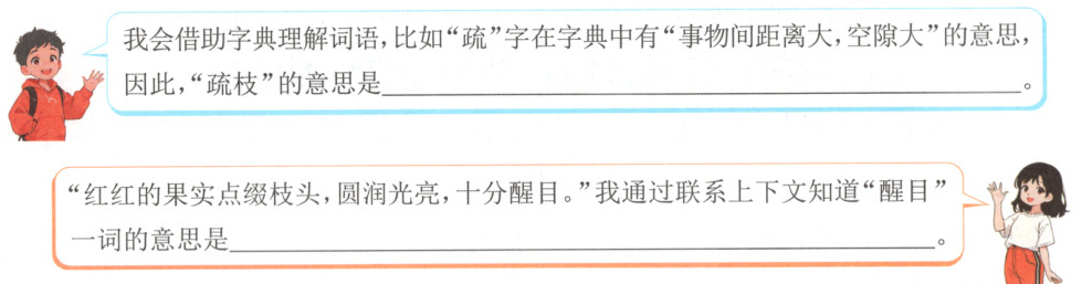 2.(阅读要素)小语和小文尝试用学过的方法理解文中词语,请帮忙补全对话。
