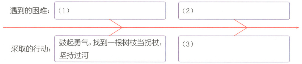 采取的行动:鼓起勇气,找到一根树枝当拐杖,坚持过河 (3)