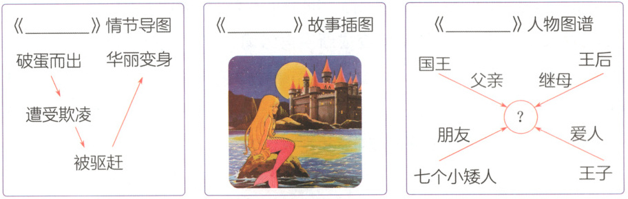 一、小华和小伙伴根据各自的阅读收获制作了三张阅读卡,请你将书名补充完整。