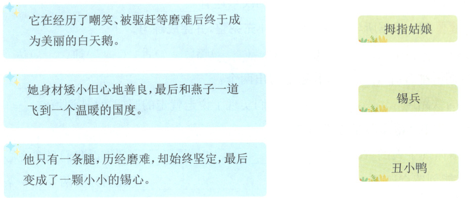 二、听,小精灵在念故事中的人物介绍,请猜出对应的人物,连一连。