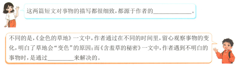 )3. (阅读要素)对比阅读课文《金色的草地》,补全下面的对话。
