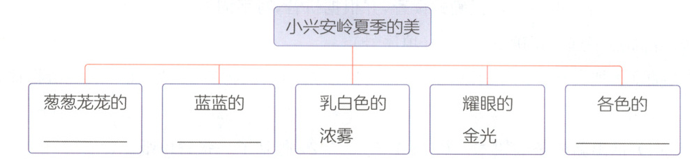 2.(阅读要素)根据选段内容找关键词句,填一填小兴安岭的夏天美在哪儿。