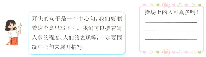 4.示例:同学们有的在跳绳,有的在玩游戏,有的在踢足球。