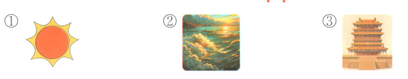 )① 太阳慢慢地升起来了,奔腾不息的黄河向着远方流去。