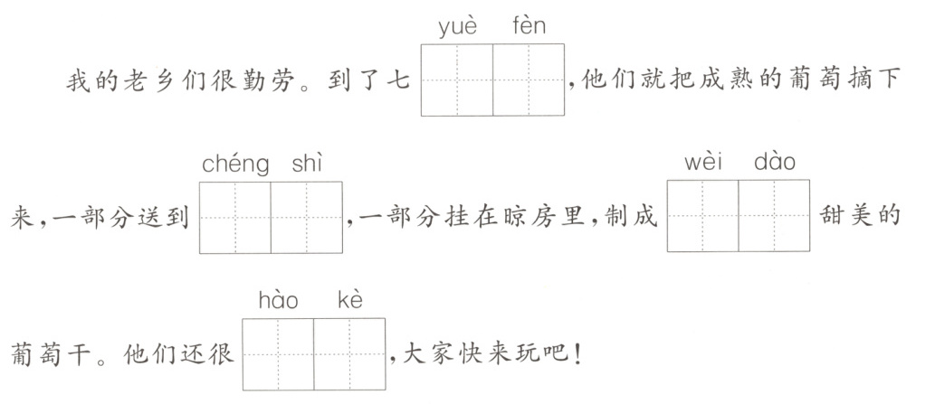二、赛买提向我们介绍他的老乡。请你看拼音,写词语。