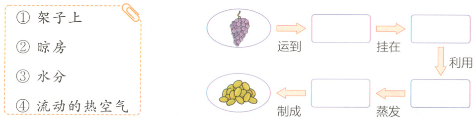 3. 选一选,说说葡萄干是怎样制成的。(填序号)