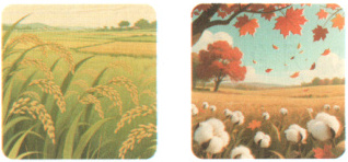 秋天到了,我和妈妈一起去郊游。田野里,(