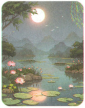 月下,水中的荷花像 。