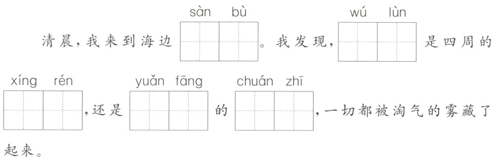 二、因为魔法,有些词语看不清了,请你根据语境和拼音,把它们写出来。