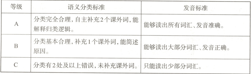 1. 根据方框内本单元的词汇按照以下维度进行分类,并补充2个相关词汇。