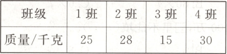 1. 下表为某学校四年级各班的垃圾回收情况。