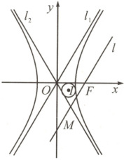 【例 6】如下图所示,在平面直角坐标系$xOy$中,已知双曲线$C$:$\dfrac{x^{2}}{a^{2}}-\dfrac{y^{2}}{b^{2}}=1(a>0,b>0)$的右焦点为$F$,两渐近线分别为$l_{1}$,$l_{2}$,过$F$作$l_{1}$的平行线与$l_{2}$交于点$M$,记$\triangle MOF$内切圆圆心为$I$. 若$OI\perp l_{1}$,则$C$的离心率为()
