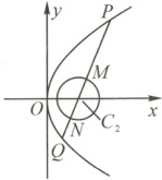 18.$12 + 6\sqrt{2}$ 解析 因为抛物线$C_1$的焦点在$x$轴上,且过点$(3,6)$,所以可设抛物线$C_1$的方程为$y^2=2px(p\gt0)$,则$36 = 2p×3$,则$2p = 12$,所以抛物线的标准方程为$y^2=12x$,焦点$F(3,0)$,准线方程$x = -3$.因为圆$C_1:x^2+y^2-6x + 8 = 0$的圆心为$(3,0)$,半径为$1$,所以直线$PQ$过抛物线的焦点,则$\frac{1}{|PF|}+\frac{1}{|QF|}=\frac{2}{p}=\frac{1}{3}$.所以$|PN|+2|QM|=|PF|+1+2(|QF|+1)=|PF|+2|QF|+3=3(|PF|+2|QF|)(\frac{1}{|PF|}+\frac{1}{|QF|})+3\geq3(3+2\sqrt{2})+3=12+6\sqrt{2}$,当且仅当$|PF|=\sqrt{2}|QF|$时取等号.