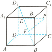 变式 3 如下图所示,棱长为 $ 3 $ 的正方体 $ ABCD - A_{1}B_{1}C_{1}D_{1} $ 中,$ P $ 为正方体表面 $ BCC_{1}B_{1} $ 上的一个动点,$ E $,$ F $ 分别为 $ BD_{1} $ 的三等分点,则 $ |PE| + |PF| $ 的最小值为()