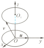 16. $\frac{3\pi}{4}$ 解析 向量$\boldsymbol{u}$的终点都在以$O$为圆心,$1$为半径的圆上;向量$\boldsymbol{v}$的终点都在以$O_1$为圆心,$1$为半径的圆上;且圆$O$与圆$O_1$的距离为$1$。如下图所示,两向量的夹角最大,为$\frac{3\pi}{4}$。