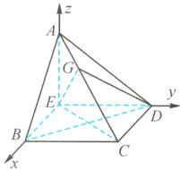 (1)的证明过程知$BCDE$为正方形,如下图所示建立坐标系,则: