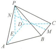 (3)记$BC$的中点为$M$,若$N$在线段$PE$上,且直线$MN$与平面$PAB$所成的角的正弦值为$\frac{\sqrt{6}}{18}$,求线段$EN$的长.
