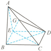 $E(0,0,0)$,$D(0,8,0)$,$A(0,0,8)$,$B(8,0,0)$,$C(8,8,0)$。设$\frac{CG}{GA}=t(t\gt0)$,$G(x,y,z)$,由$\overrightarrow{CG}=t\overrightarrow{GA}$可得$G\left(\frac{8}{1 + t},\frac{8}{1 + t},\frac{8t}{1 + t}\right)$,则$\overrightarrow{ED}=(0,8,0)$,$\overrightarrow{EG}=\left(\frac{8}{1 + t},\frac{8}{1 + t},\frac{8t}{1 + t}\right)$,易知平面$CEG$的一个法向量为$\overrightarrow{DB}=(8,-8,0)$,设平面$DEG$的一个法向量为$\boldsymbol{n}=(x_0,y_0,z_0)$,则$\begin{cases}\boldsymbol{n}·\overrightarrow{ED}=0\\\boldsymbol{n}·\overrightarrow{EG}=0\end{cases}$得$\begin{cases}8y_0 = 0\frac{8}{1 + t}x_0 + \frac{8}{1 + t}y_0 + \frac{8t}{1 + t}z_0 = 0\end{cases}$,令$x_0 = 1$得$z_0=-\frac{1}{t}$,$\boldsymbol{n}=\left(1,0,-\frac{1}{t}\right)$,所以$\frac{\overrightarrow{DB}·\boldsymbol{n}}{|\overrightarrow{DB}||\boldsymbol{n}|}=\frac{8}{8\sqrt{2}×\sqrt{1 + \frac{1}{t^2}}}=\frac{\sqrt{10}}{5}$,解得$t = 2$,所以$\frac{CG}{GA}=2$,因为$AC = 8\sqrt{3}$,$EC = 8\sqrt{2}$,所以$AE = 8$,那么点$G$到底面的距离$d=\frac{2}{3}×8=\frac{16}{3}$,所以三棱锥$G - ECD$的体积$V=\frac{1}{3}×\frac{1}{2}×8×8×\frac{16}{3}=\frac{512}{9}$。