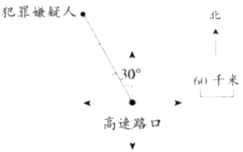 1. 某犯罪嫌疑人驾驶车辆经高速路口以 120 千米/时的速度向北偏西$30°$方向逃逸,全城警力实施追捕。你能预判 1.5 小时后犯罪嫌疑人的具体位置并标记在图中吗?(4 分)
