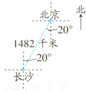 (1) 北京位于长沙的(