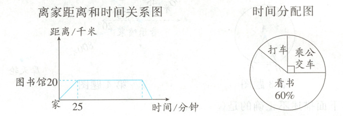 小明乘公交车从家到图书馆看书,看完书后打车回家,所用的时间与离家距离的关系如下面甲、乙两图所示。